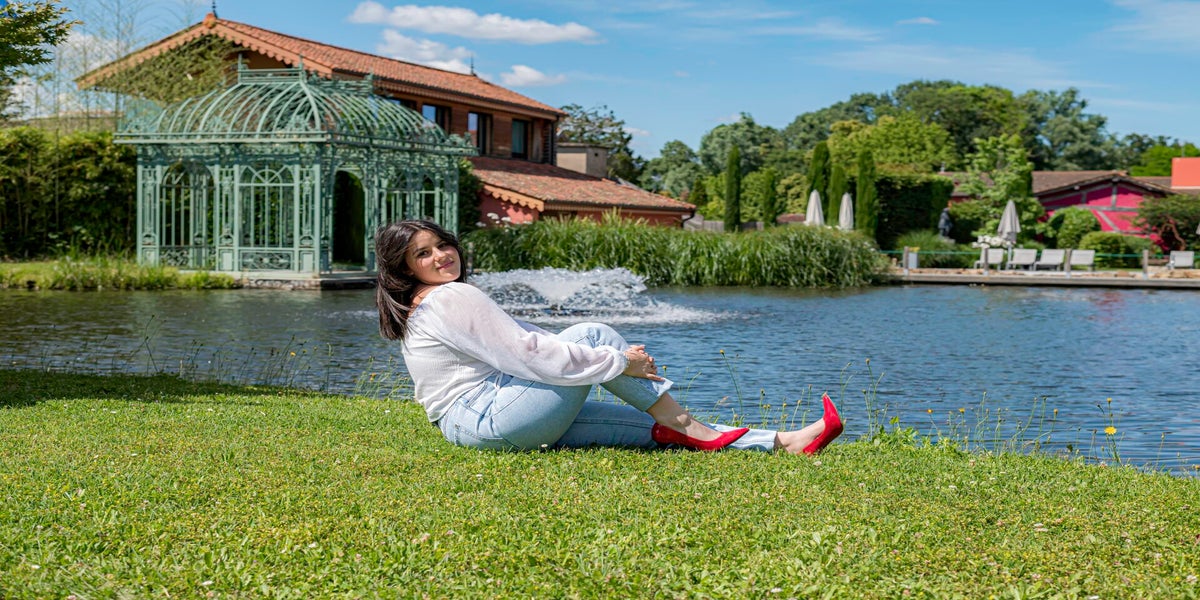 Angèle dans les jardins de Gorges Blanc